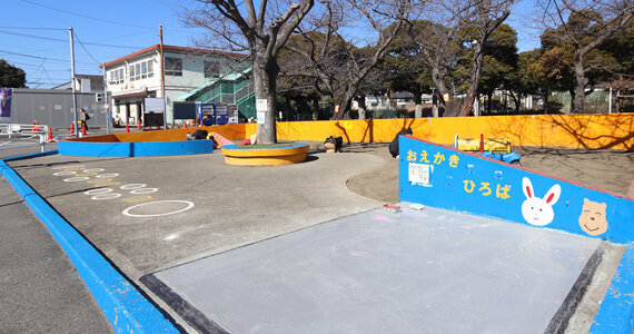 根岸公園は自転車などに乗って交通ルールを学ぶ交通公園になっています。 市街地と同じように道路や交通標識、信号などがあり、子どもたちが実際に自転車や三輪車などに乗って、交通ルールを身につけることができます。